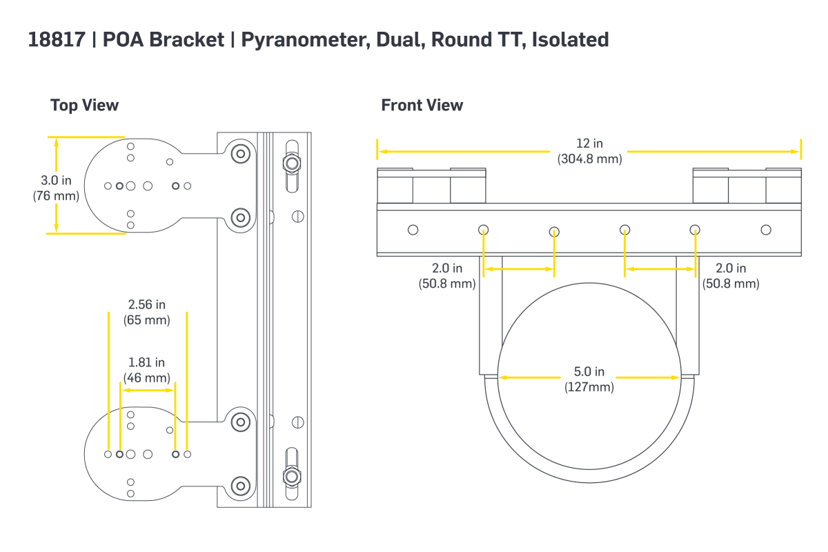 - POA Bracket | Pyranometer, Dual, Square TT + Round TT, Isolated